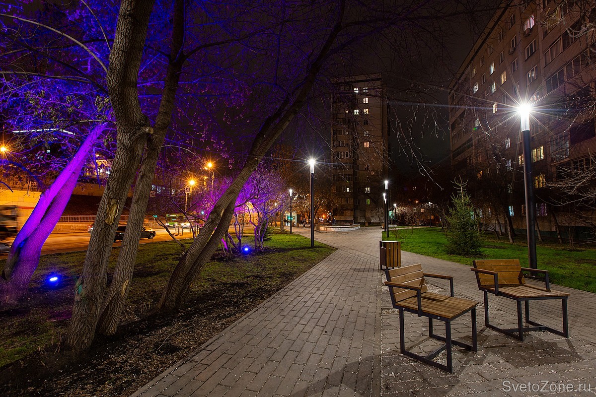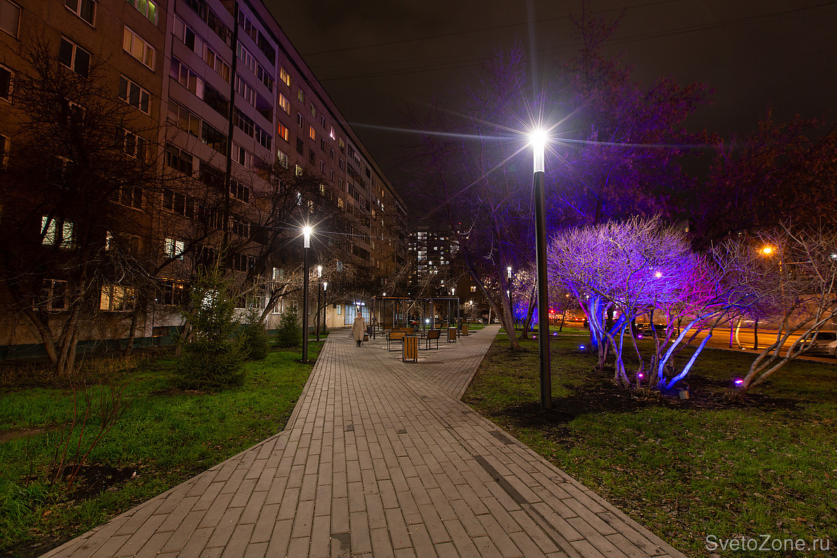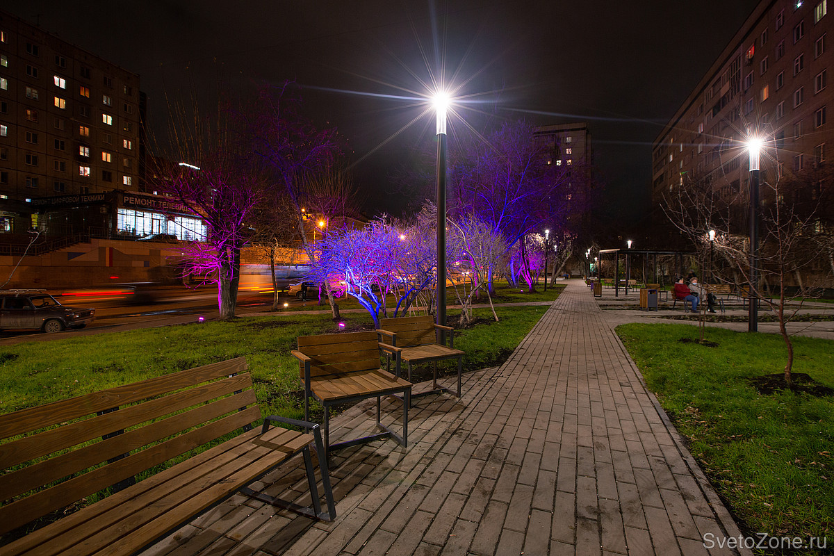 Благоустройство не обошлось без освещения. За освещение сквера отвечают интегрированные в опору светильники LV-INTEGRATED TYPE-C. Приборы на опорах высотой в 4,5 метра и цветовой температурой в 4000 К создают комфортное мягкое освещение.