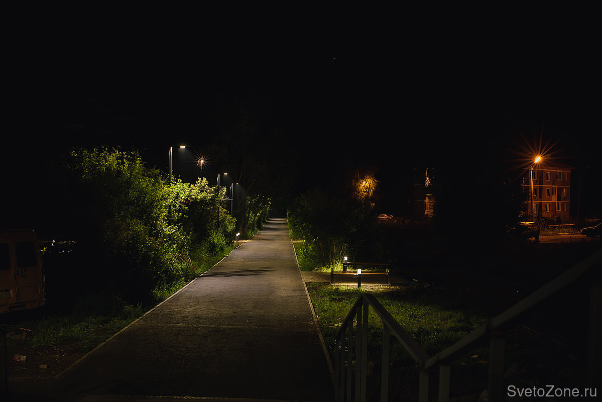 Светильники LV-BOLLARD отвечают за локальное и навигационное освещение. Болларды расположены вдоль пешеходных дорожек, вблизи лавочек, качелей и других мест отдыха. Столбики светят с высоты 800 мм. Акриловые линзы формируют пучок света таким образом, что даже при небольшой высоте светильников пятно засветки становится ярким и широким.