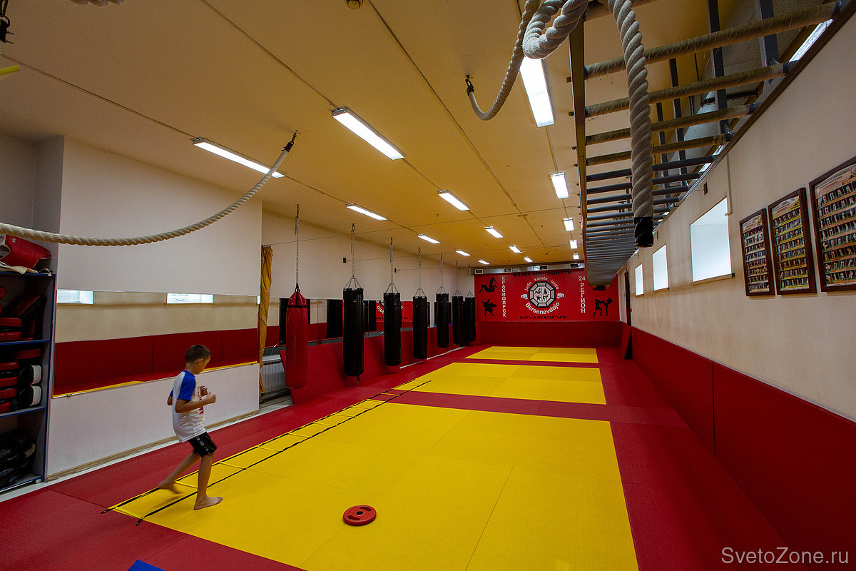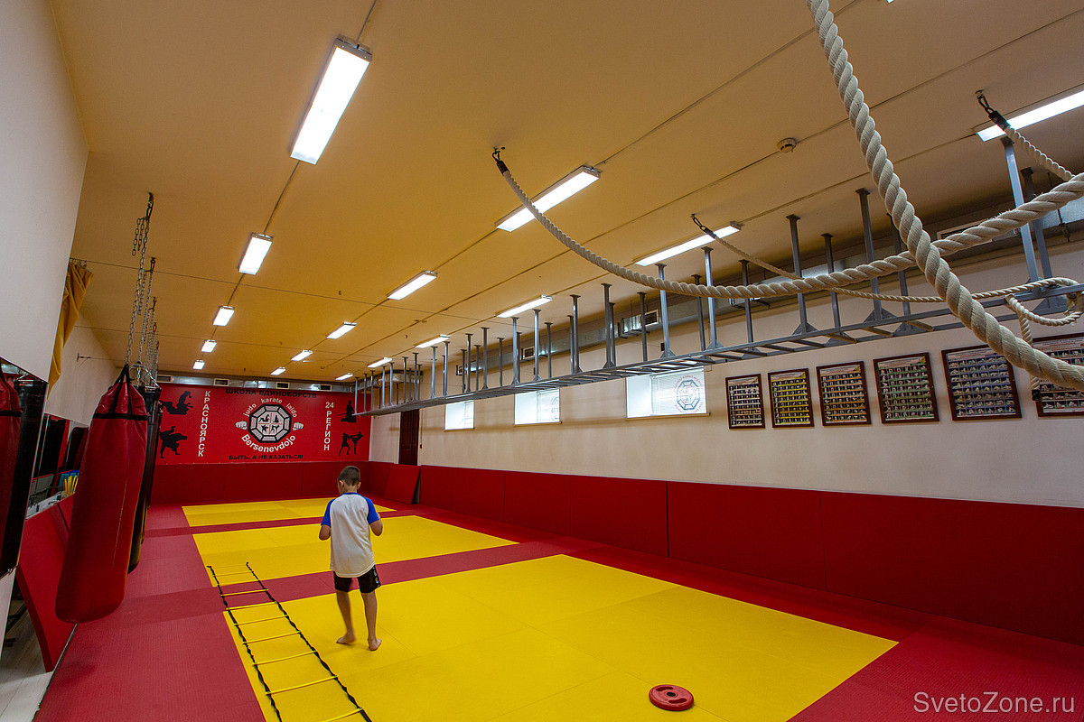 Академия боевых искусств и спортивных единоборств расположена в Красноярске на улице Алексеева. В 2020 году руководство академии обратилось в Ledvizor для решения задачи по освещению спортзала, раздевалок и коридоров.