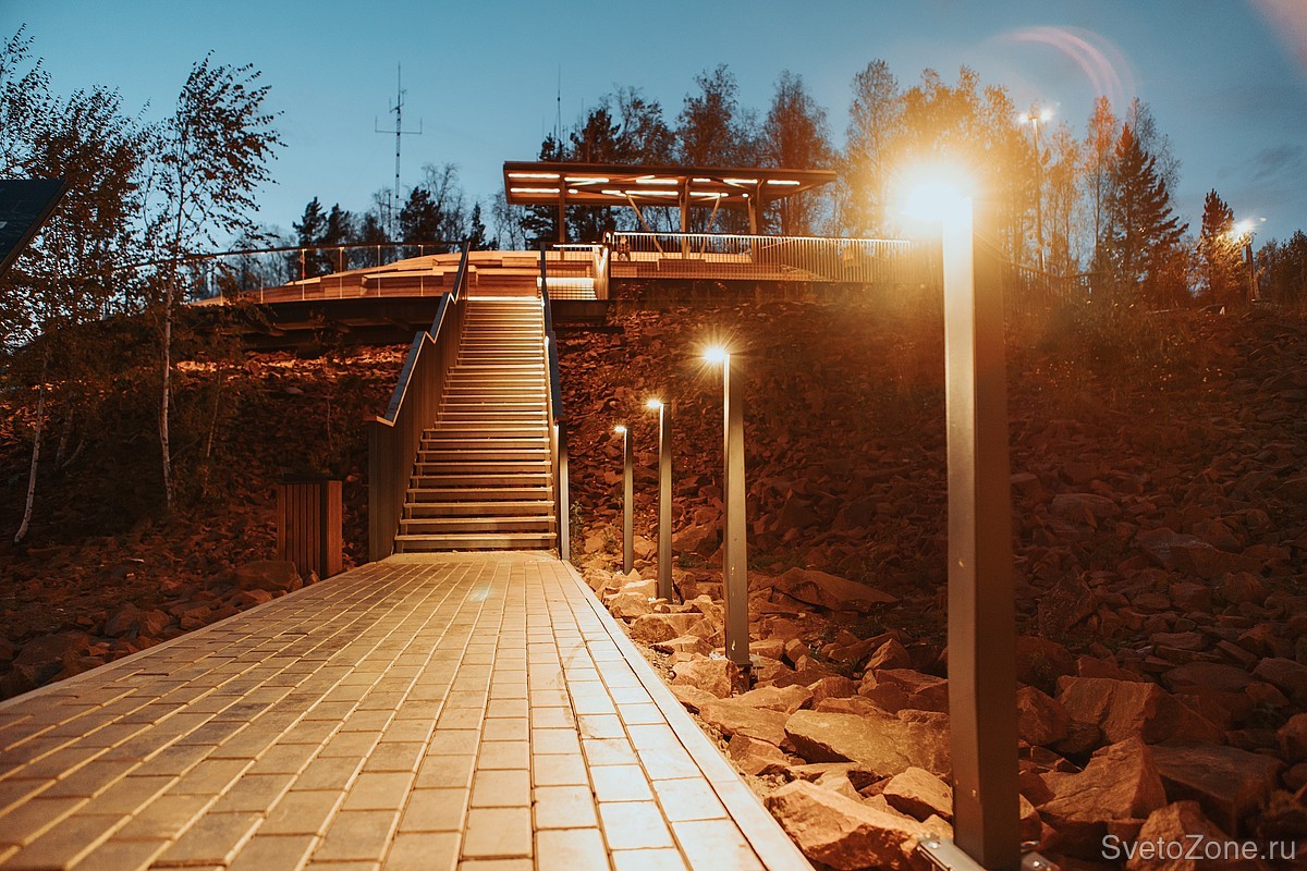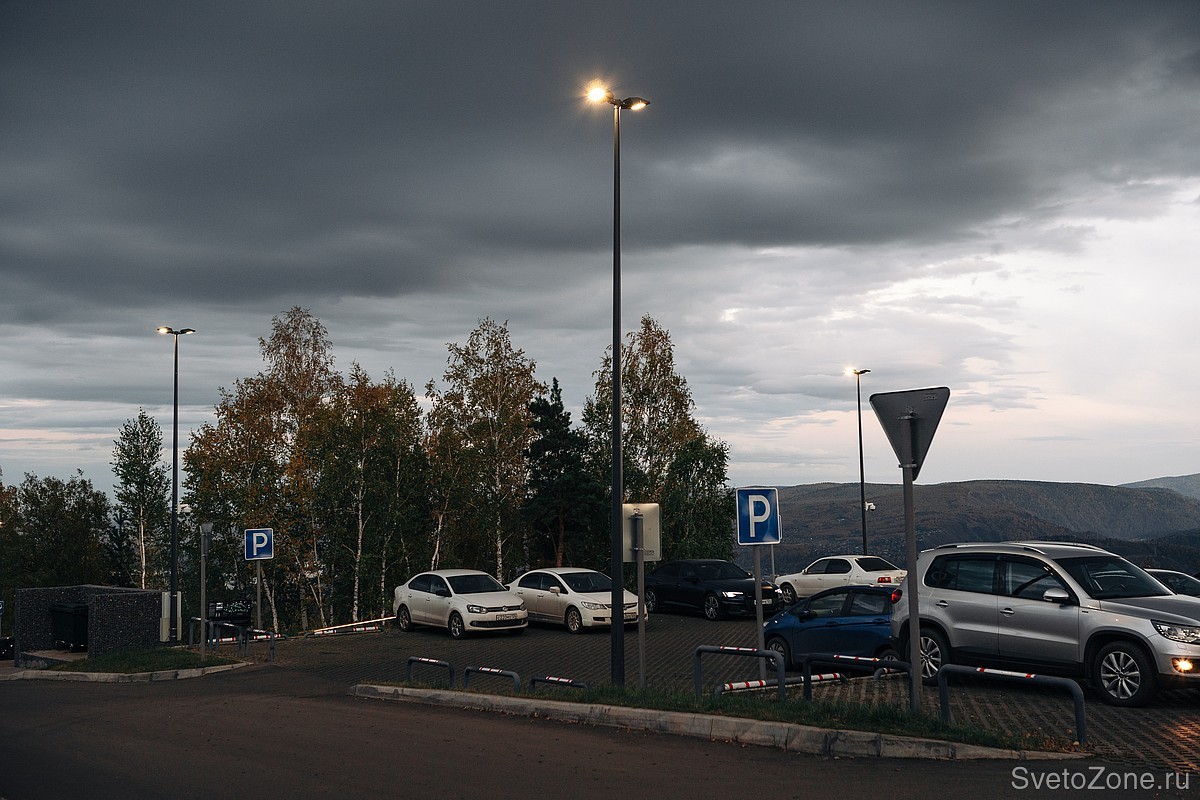 На парковке вблизи смотровой площадки установлены парковые светильники LV-PARK. Консольные приборы освещают парковочные места и часть дороги. Благодаря своему дизайну светильники Ledvizor удачно интегрировались в местную экосистему.