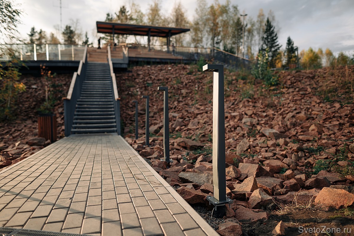 На пешеходной дорожке, идущей от амфитеатра, установлены LV-SEVEN. Болларды отвечают за локальную подсветку. При этом светильники являются важным элементом общественного пространства и, безусловно, формируют его узнаваемый облик.
