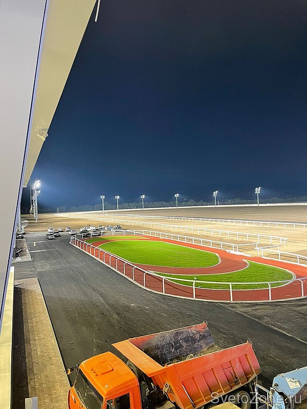 Уникальность нового ипподрома в том, что скаковая дорожка оборудована мачтами освещения. Такого в России еще не было. Освещение ипподромного поля организовано в соответствии с международными стандартами и требованиями к объектам для проведения телетрансляций «МАЧТ ТВ» и других международных спортивных телевещательных компаний. Благодаря эксклюзивным условиях сотрудничества завода «ФЕРЕКС» с японским производителем светодиодов NICHIA удалось в установленные сроки изготовить партию светодиодов с показателями индекса цветопередачи TLSI 92 и красного спектра R9.
