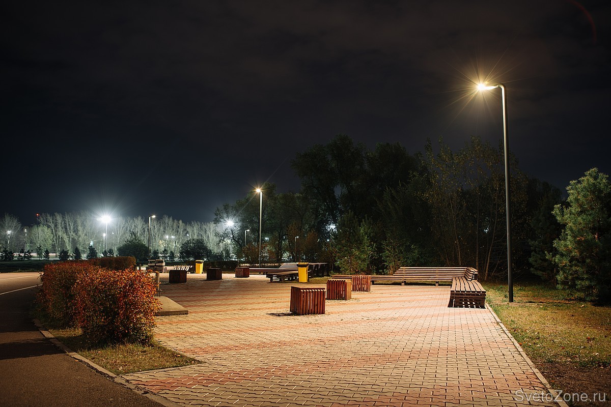 С каждым годом инфраструктура на Татышев развивается. На острове благоустраивают новые участки территории. Появляются места отдыха, спортивные площадки и, конечно, освещение.
