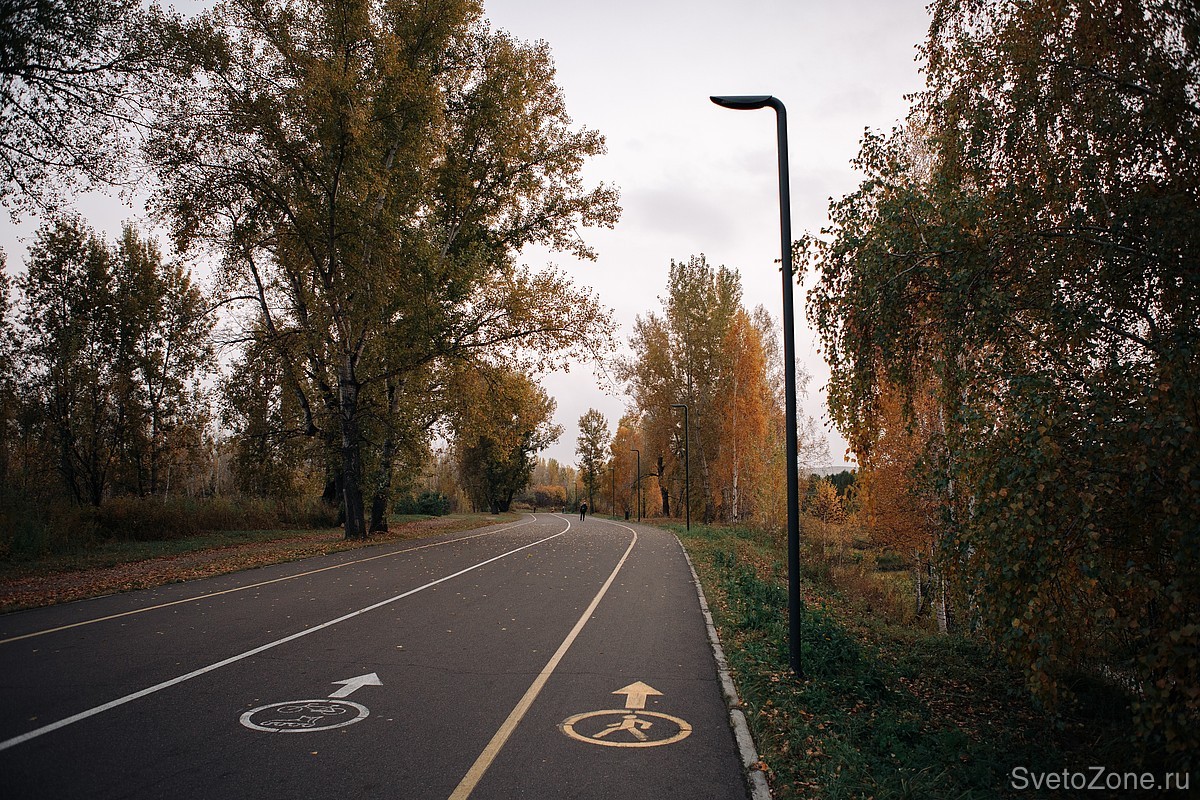 Теперь пешеходные дорожки и дорожки для велосипедистов на Олимпийской аллее стали намного уютнее и безопаснее в вечернее время суток. Светильники органично вписались в атмосферу зеленного острова и преобразили его вечерний облик.
