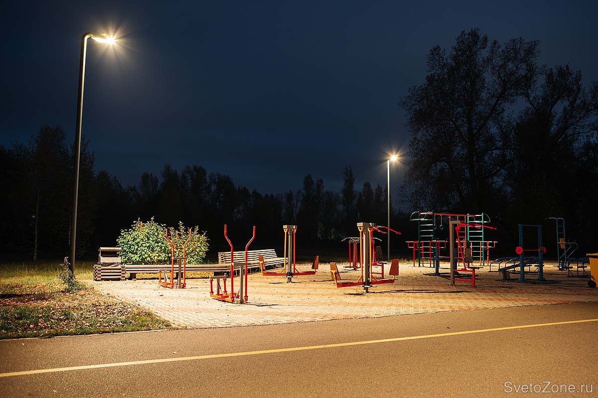 Консольное светильники LV-LEAF освещают не только Олимпийскую аллею, но и расположенные рядом элементы благоустройства. Приборы освещают спортивные и детские площадки, зоны отдыха и небольшие перекрёстки.