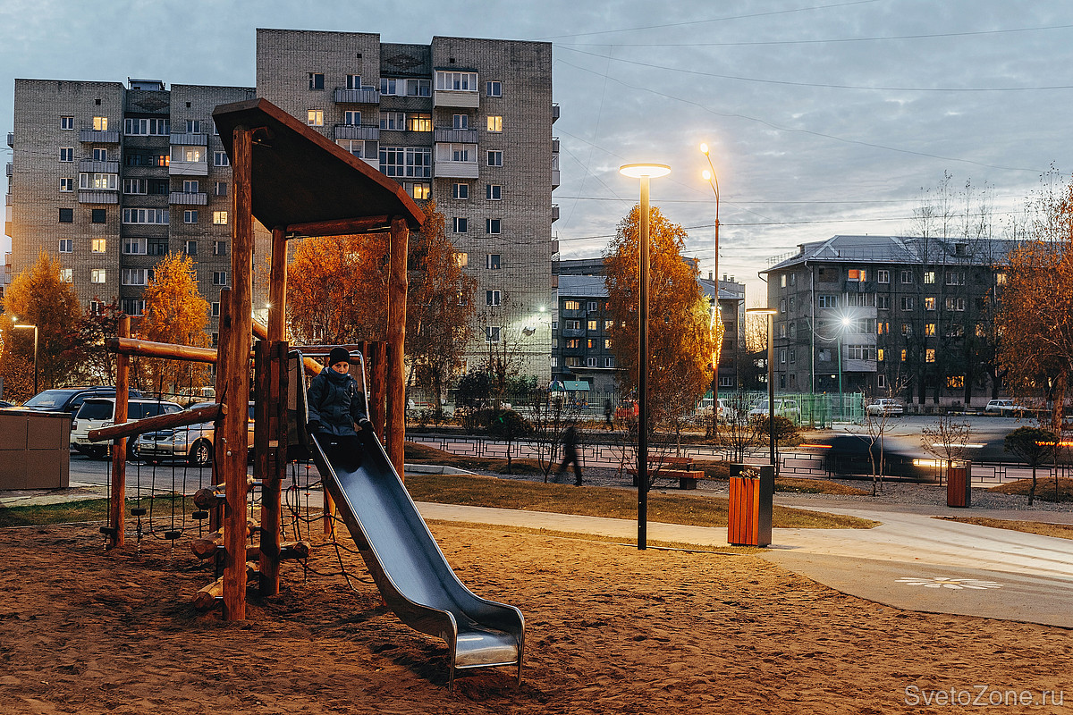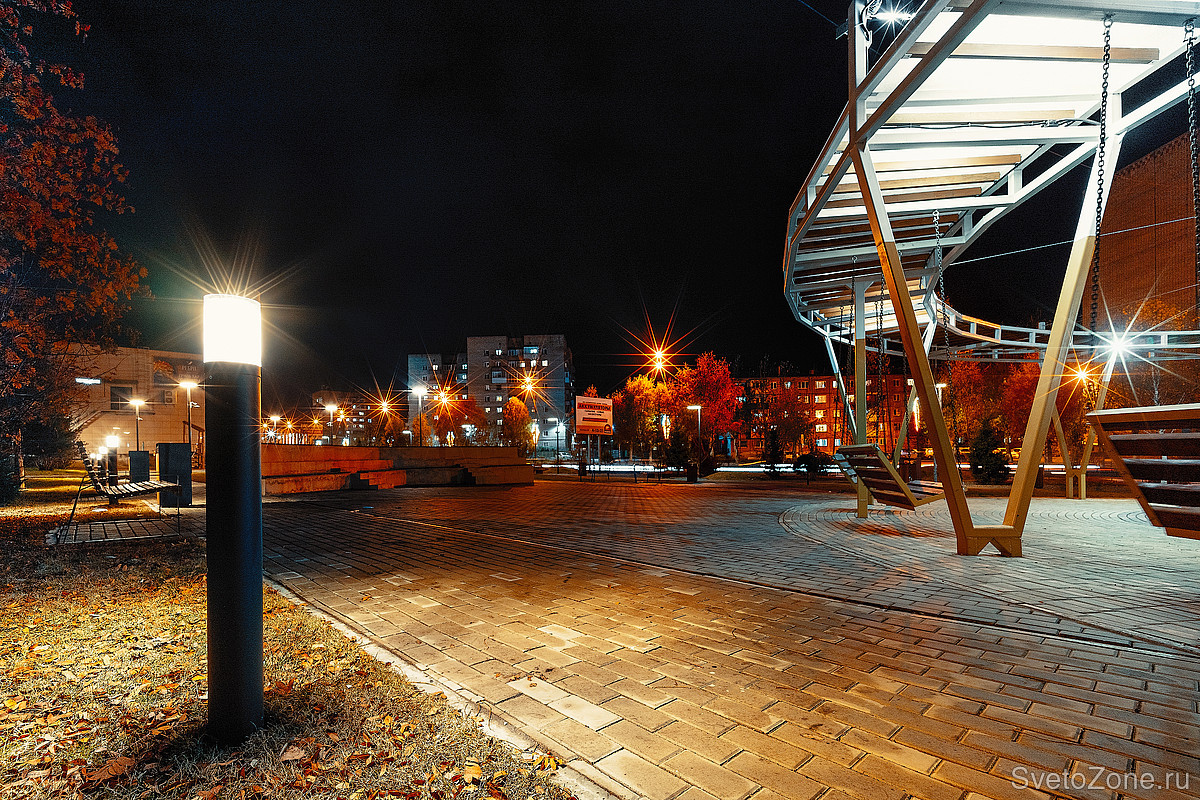 За функциональное освещение сквера отвечают LV-TORCHERE. Торшерные светильники освещают территорию, формируя красивые пятна засветки.