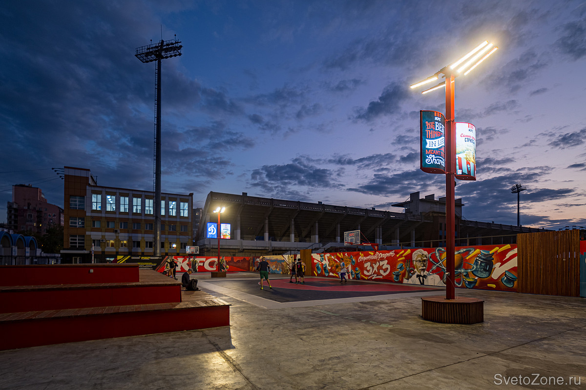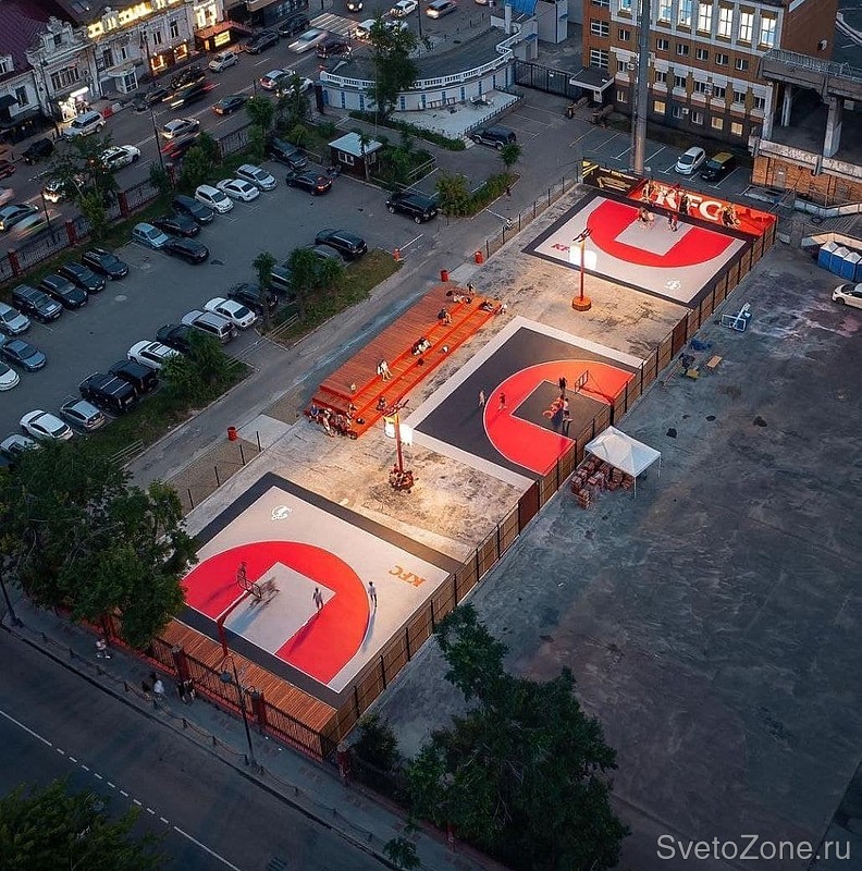 Так, совместно с компанией Светлый город, мы реализовали еще один классный проект освещения в Приморском крае. Теперь на площадке тренируются и играют в баскетбол в вечернее время суток.