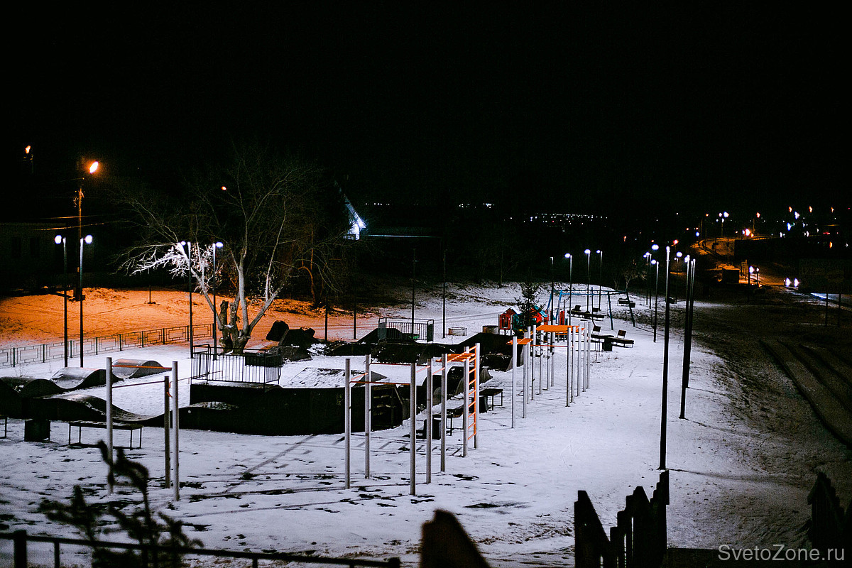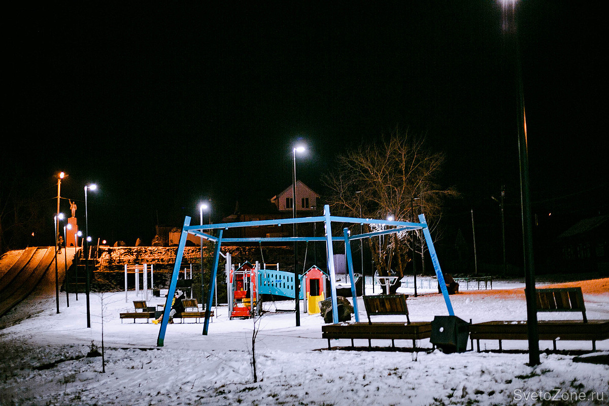 В зимнее время темнеет рано, однако благодаря освещению, в вечернее время в сквере царит уютная и энергичная атмосфера. Дети катаются на горках, играют на площадках и не хотят уходить. Жители Канска с радостью прогуливаются в сквере, как днём, так и вечером.