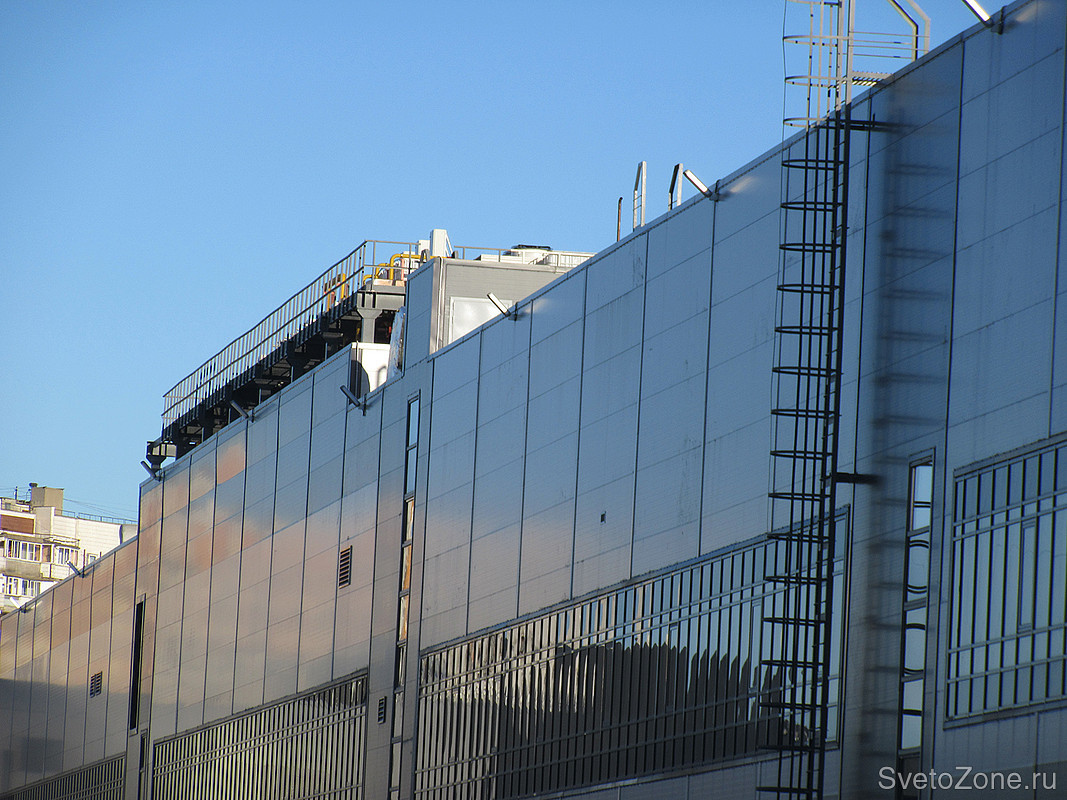 Несмотря на то, что это производственный комплекс, проектировщики постарались придать зданию узнаваемый и немонотонный вид. Наружное освещение организовали с помощью светодиодных светильников серии ДКУ. Их установили на фасадной части здания.
