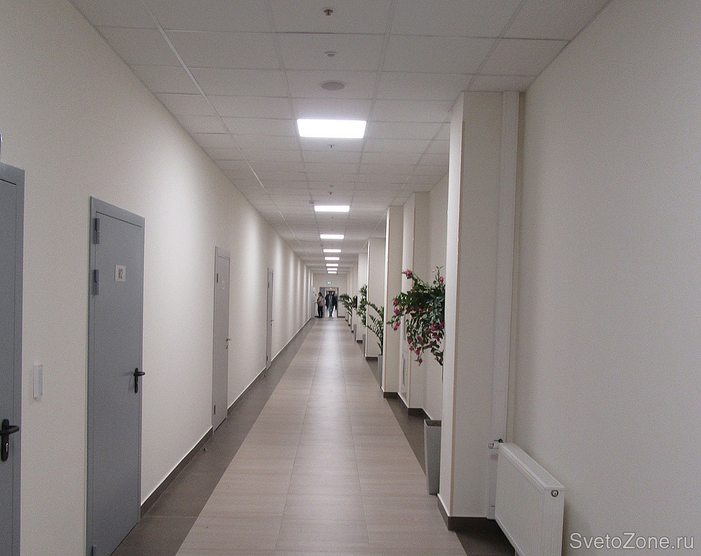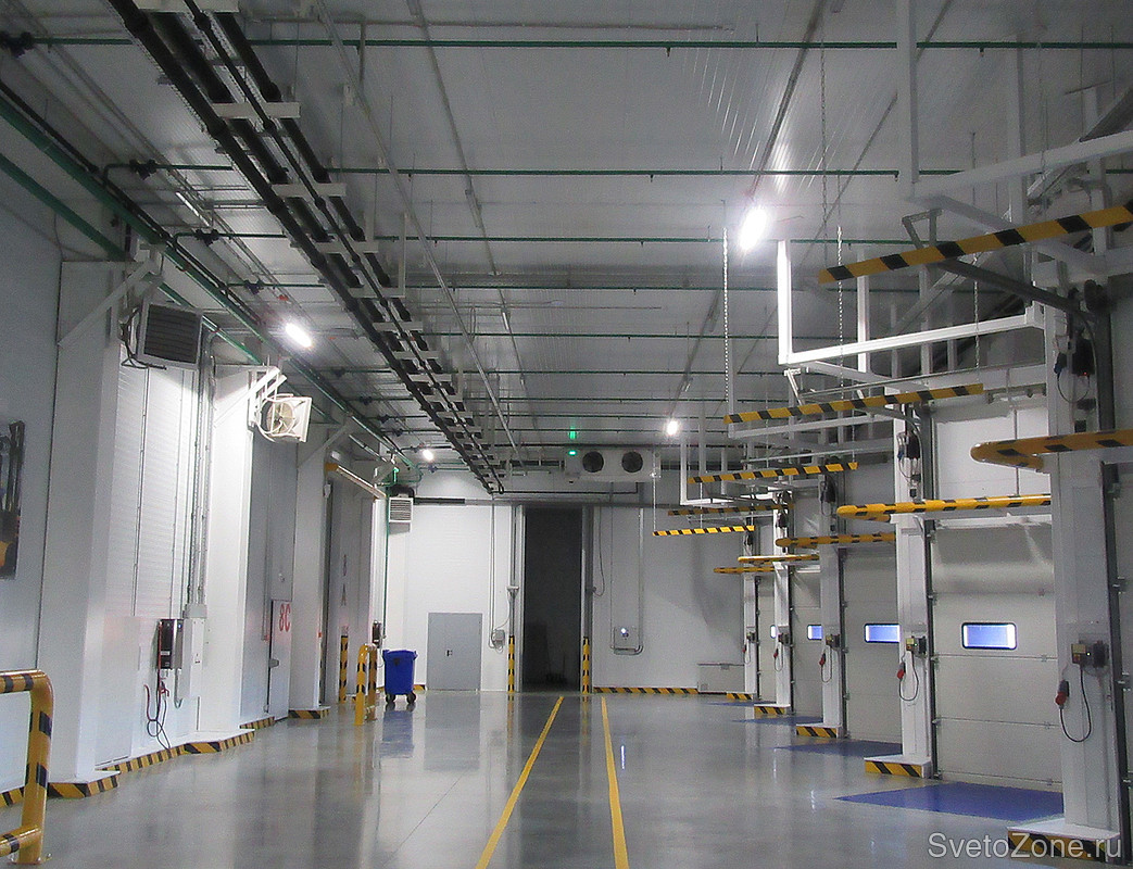 Для освещения складских помещений были выбраны линейные светодиодные светильники серии ДСО. Освещение офисных, общественных помещений и коридоров организовали с помощью встраиваемых моделей ДВО и ССВ. В производственном секторе освещение обеспечивают светодиодные светильники серий ДСО и FPL. |