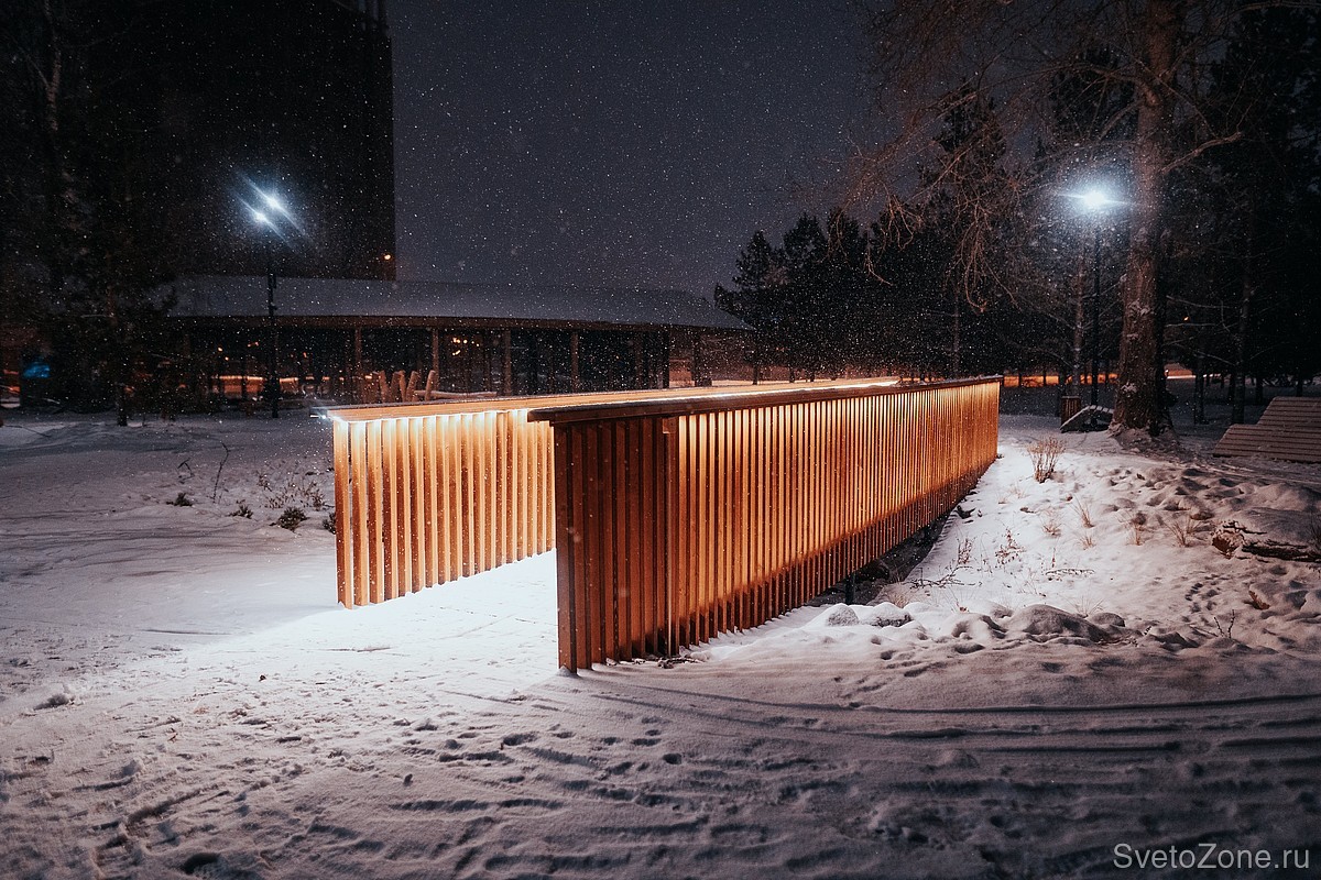 Оборудование Ledvizor гармонично вписалось в «зелёную» экосистему сквера. Светильники стали дополнительным, а, главное, уместным элементом дизайна общественного пространства.