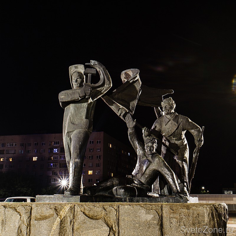 Для освещения Монумента героям Волжской военной флотилии поставлены прожекторы для акцентной подсветки SIGNUM RADUGA™, более подходящие по концепции к дизайнерским опорам, установленным после реконструкции.