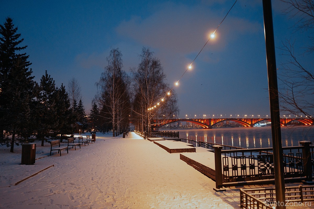 Освещение левобережной набережной Енисея в районе «Капитанского клуба»
