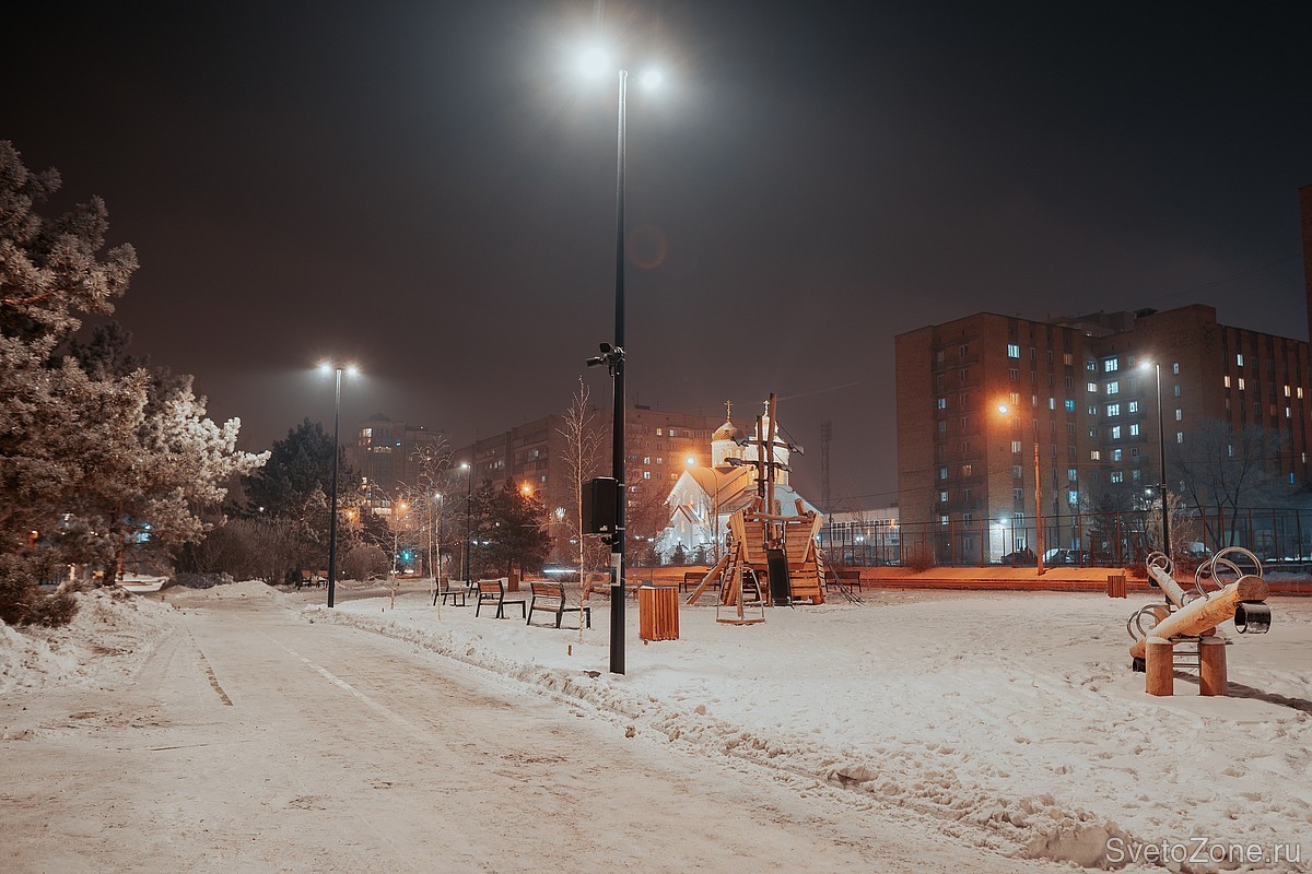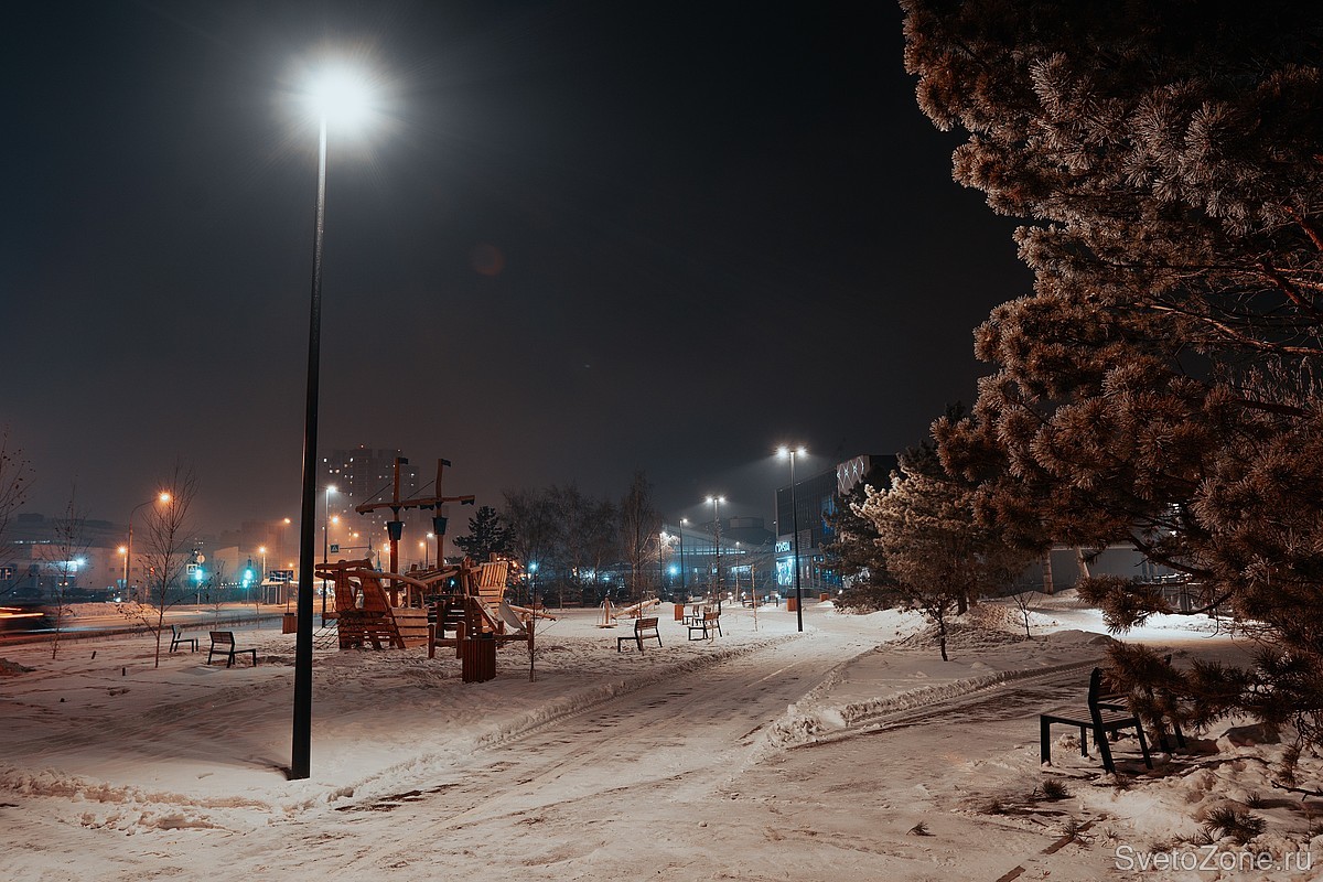 Еще один городской проект освещения, реализованный в Красноярске. Сквер расположен между Качей и улицей Республики. Общественное пространство благоустроили одновременно с набережной Качи.