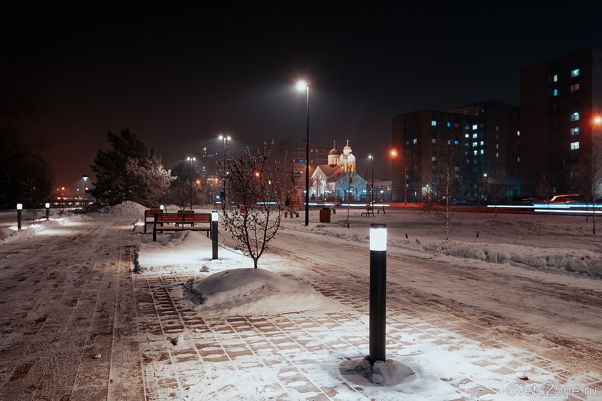 Функциональное освещение сквера реализовано с помощью парковых светильников LV-PARK. За локальное освещение возле лавочек отвечают болларды LV-BOLLARD.