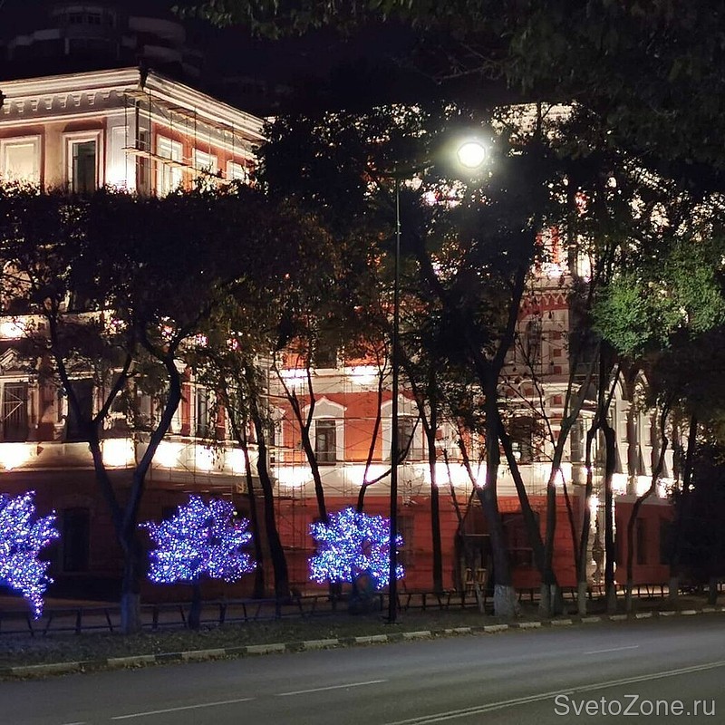 Для организации подсветки применили светодиодные светильники серии FWL. Всего было установлено 149 светильников. Подсветка будет автоматически включаться и выключаться по заданному графику.