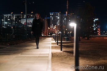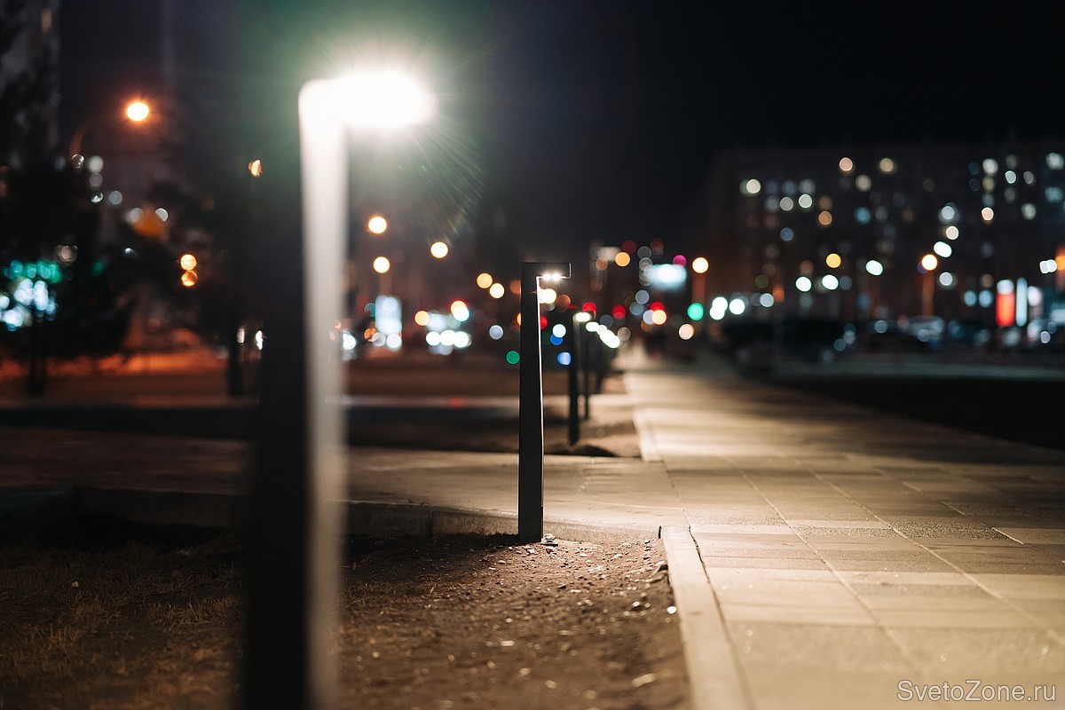 В результате получился удобный и симпатичный пешеходный транзит между улицами Алексеева и Шахтёров. Уличные светильники Ledvizor не только освещают дорожку в тёмное время суток, но и становятся важным элементом благоустройства днём.