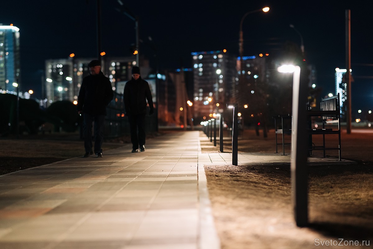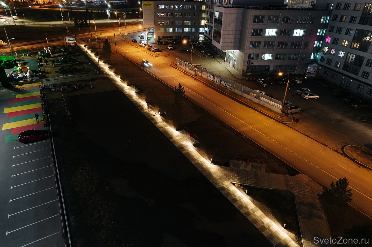 Еще один проект освещения, реализованный совместно с нашими партнёрами из компании Оверсан. Новая пешеходная дорожка расположена на улице Батурина возле торгового центра «Рэд Сэйл» в Советском районе Красноярска.
