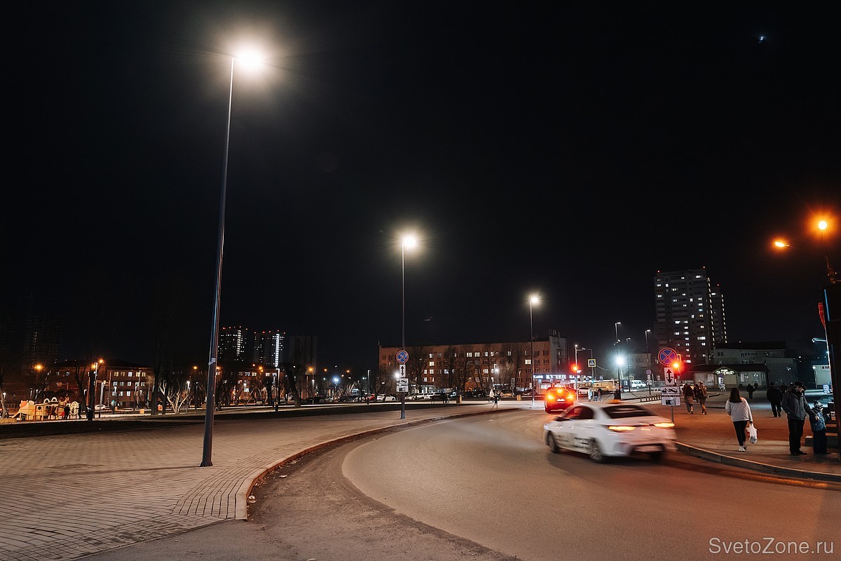 За освещение автомобильных участков дороги возле сквера отвечают консольные светильники LV-CITY.