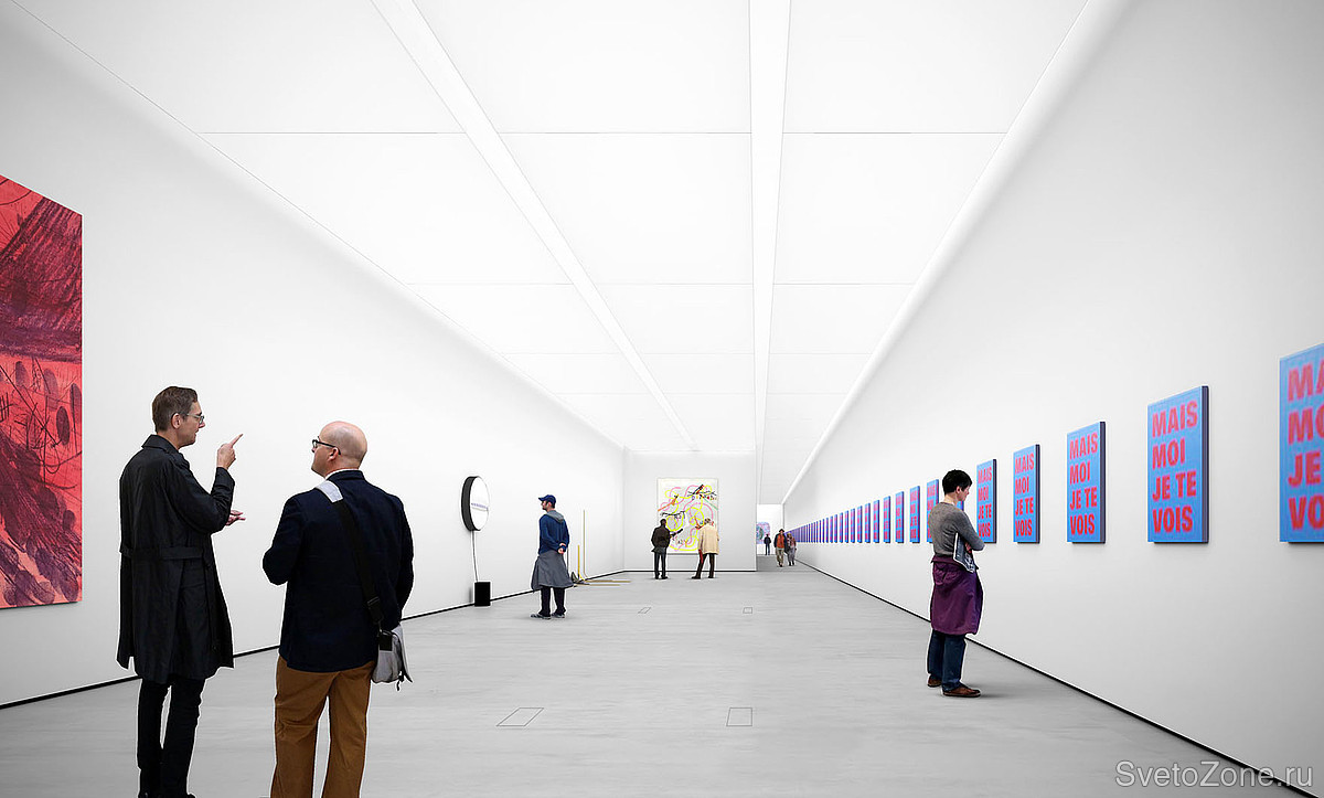 В соответствии с выбранной схемой освещения эффект равномерного скольжения стен должен подчеркнуть новую планировку интерьера и его трехмерные пространственные объемы. Светодиодные линейки GRIVEN PARADE L-3 в цветовой конфигурации RGBW установлены на потолке по периметру помещения. Благодаря широкой эллиптической оптике излучаемый свет идеально отражается на внутренних перфорированных поверхностях, создавая неожиданный WOW-эффект. Завораживающая игра с изменением цвета привлекает внимание посетителей, вовлекая их в приятную, расслабляющую атмосферу.