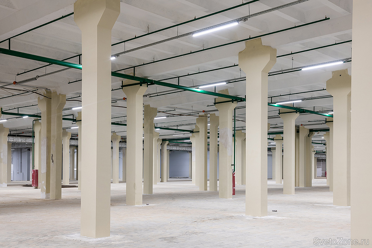 В г. Москва (район Очаково-Матвеевское) в рамках реконструкции старого здания под склад были заменены все инженерные сети, в том числе организована новая система светодиодного освещения. Для общего освещения на этажах (площадь каждого этажа порядка 18 000 кв.м) выбрали разные модификации линейных светильников ДСО (всего более 1000 шт).