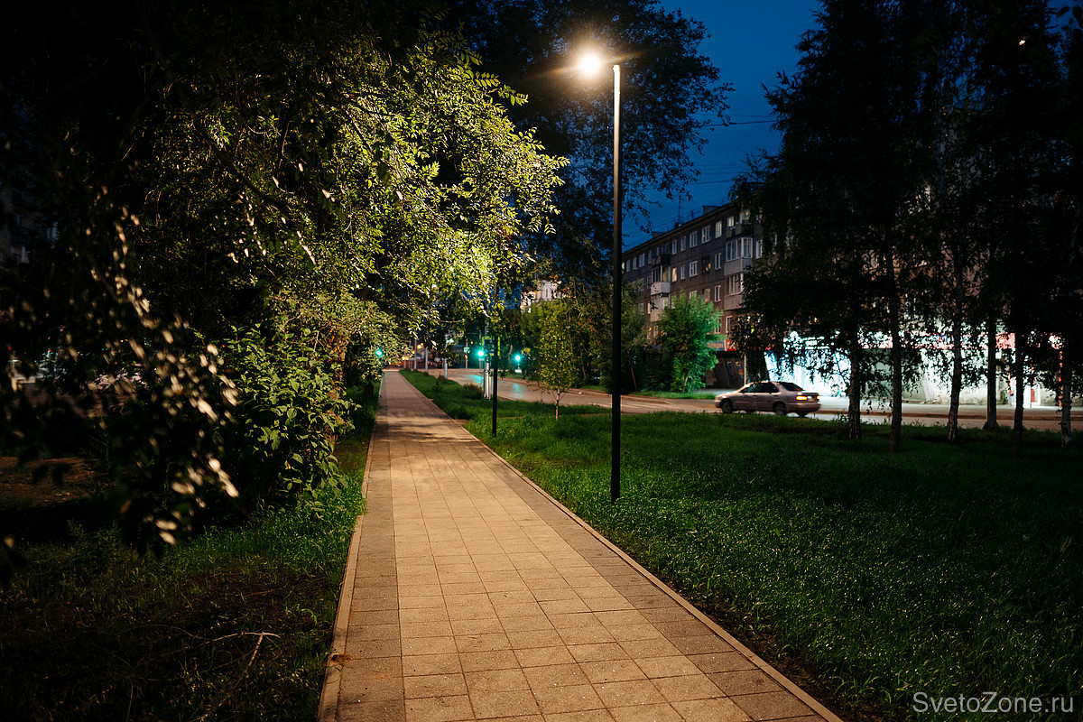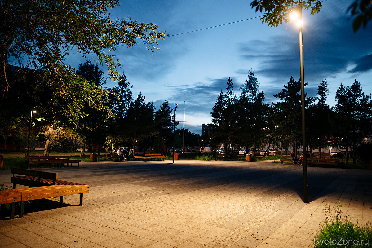 Оборудование Ledvizor подобрано с тёплой цветовой температурой в 3000К. При этом все светильники укомплектованы оптикой. Поэтому в тёмное время суток общественное пространство наполняется тёплым и уютным светом, который не слепит в глаза проезжающих водителей и гуляющих пешеходов.