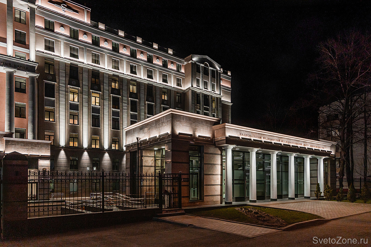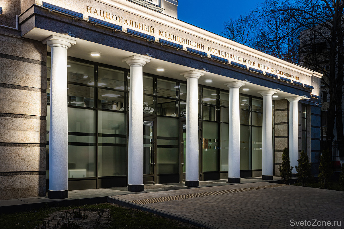 Для здания с классической архитектурой было выбрано соответствующее световое решение — равномерное заливающее освещение. Мы хотели сохранить восприятие целостности образа здания в вечернее и ночное время, расставив небольшие акценты.