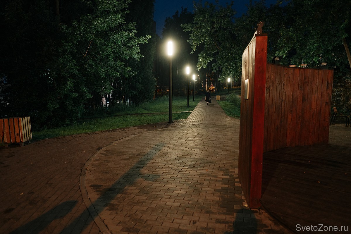 За функциональное освещение общественного пространства отвечают уличные светильники LV-INTEGRATED TYPE-С. Специально для этого сквера мы сделали приборы высотой 4 метра и укомплектовали их матовыми рассеивателями.