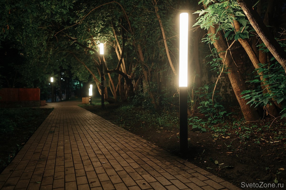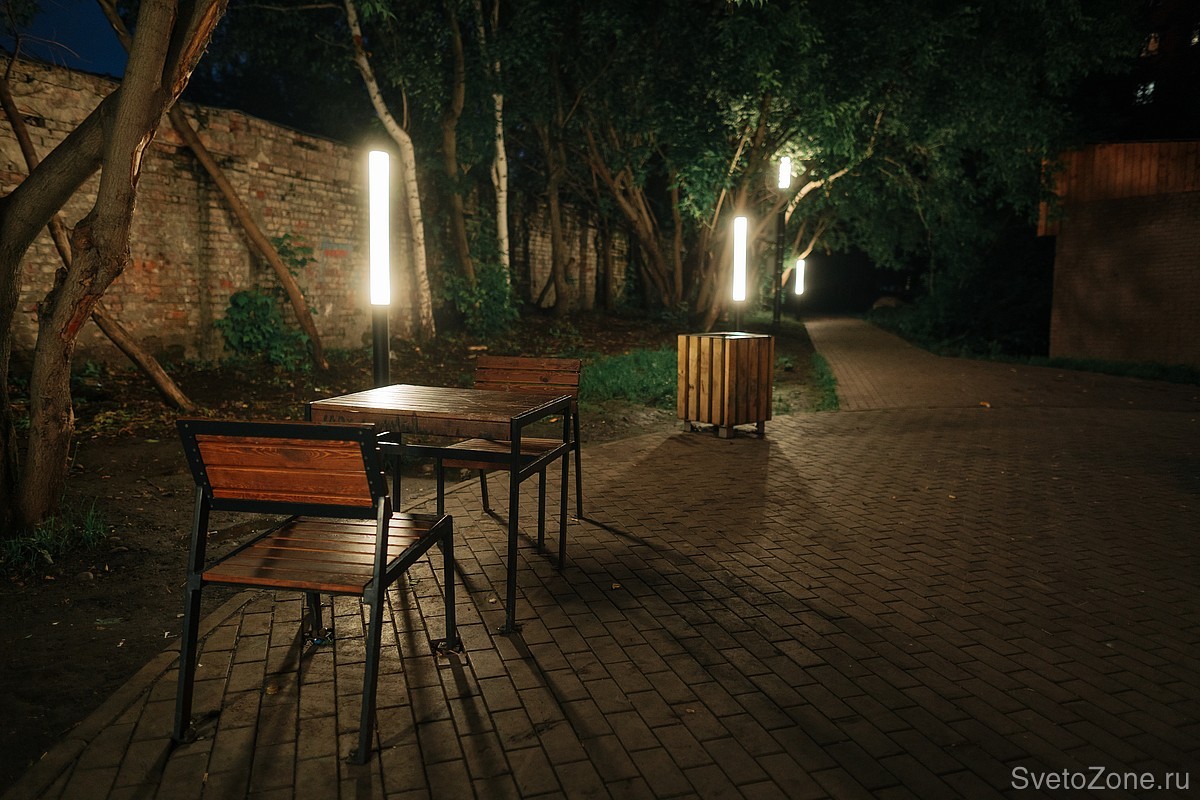 Столбики LV-BOLLARD отвечают за локальную подсветку мест отдыха и создают дополнительный свет на пешеходных дорожках. Как и с LV-INTEGRATED TYPE-С, мы сделали нестандартное решение и с боллардами: по запросу заказчика наши инженеры увеличили стандартную высоту светильников до 2000 мм и оборудовали их матовыми рассеивателями.