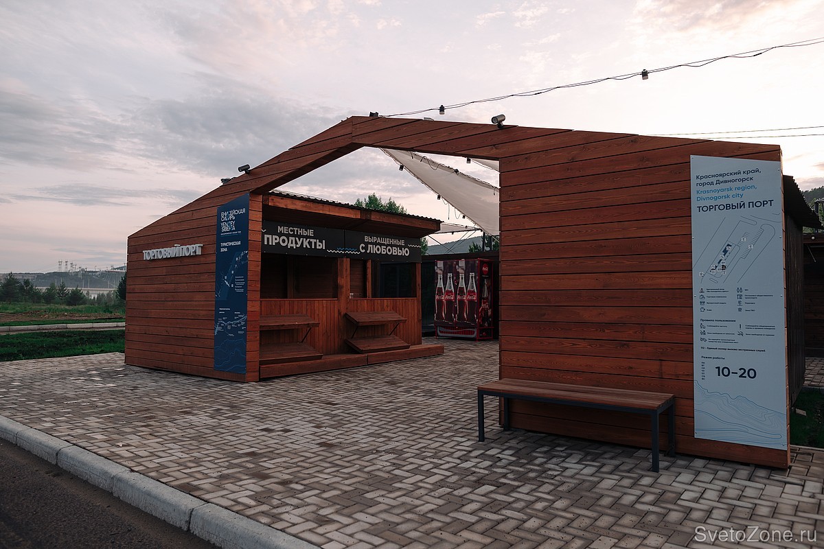 Новое общественное пространство появилось в Дивногорске в начале 2022 года. Место, известное как «рыбная ярмарка или «рыбный рынок», благоустроили и дали новое название – «Торговый порт».