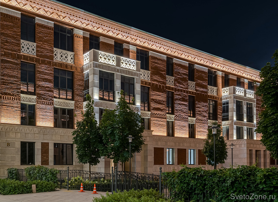 Рассказывает начальник конструкторского отдела: «Все электротехнические коммуникации необходимо было спрятать и сделать невидимыми глазу. Более того, световые модули светильников также требовалось скрыть. С любой обзорной точки — с соседнего корпуса, с территории или из окон апартаментов — световые источники не должны быть видны, словно светильников нет вовсе.