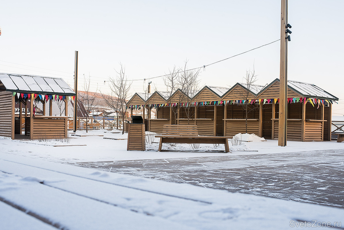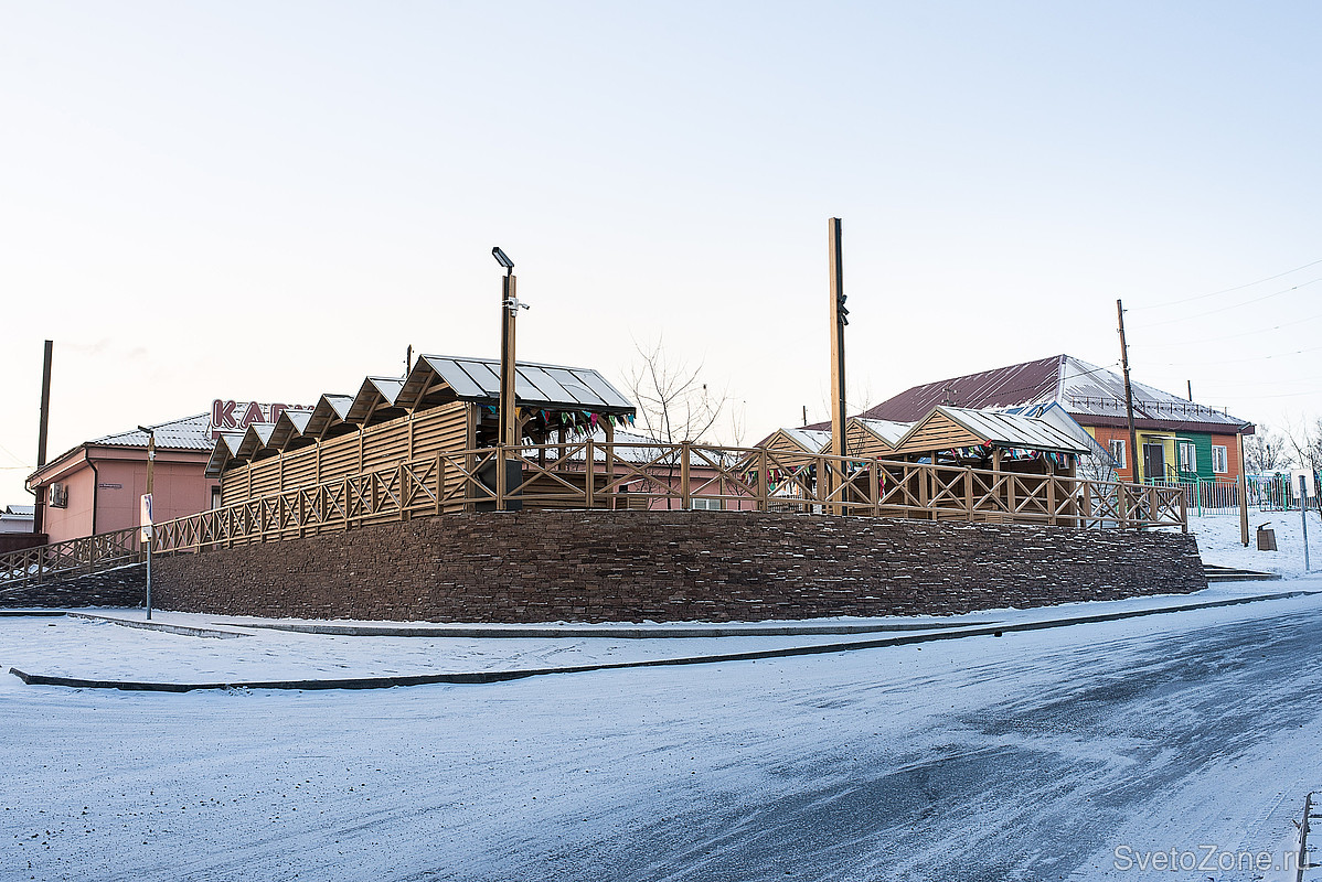 За функциональное освещение участка площади возле ярмарки отвечают светильники LV-LIGHTSABER. Ландшафтные прожекторы с оптикой установлены на опоры, обшитые деревом.