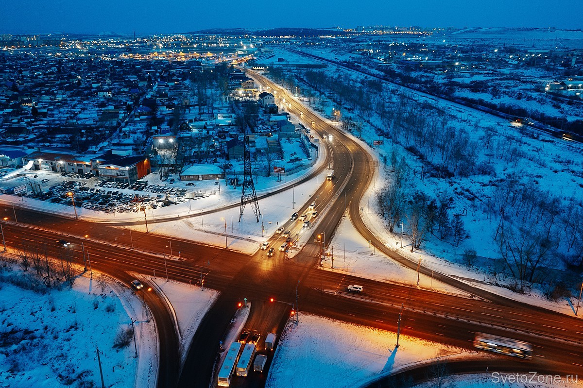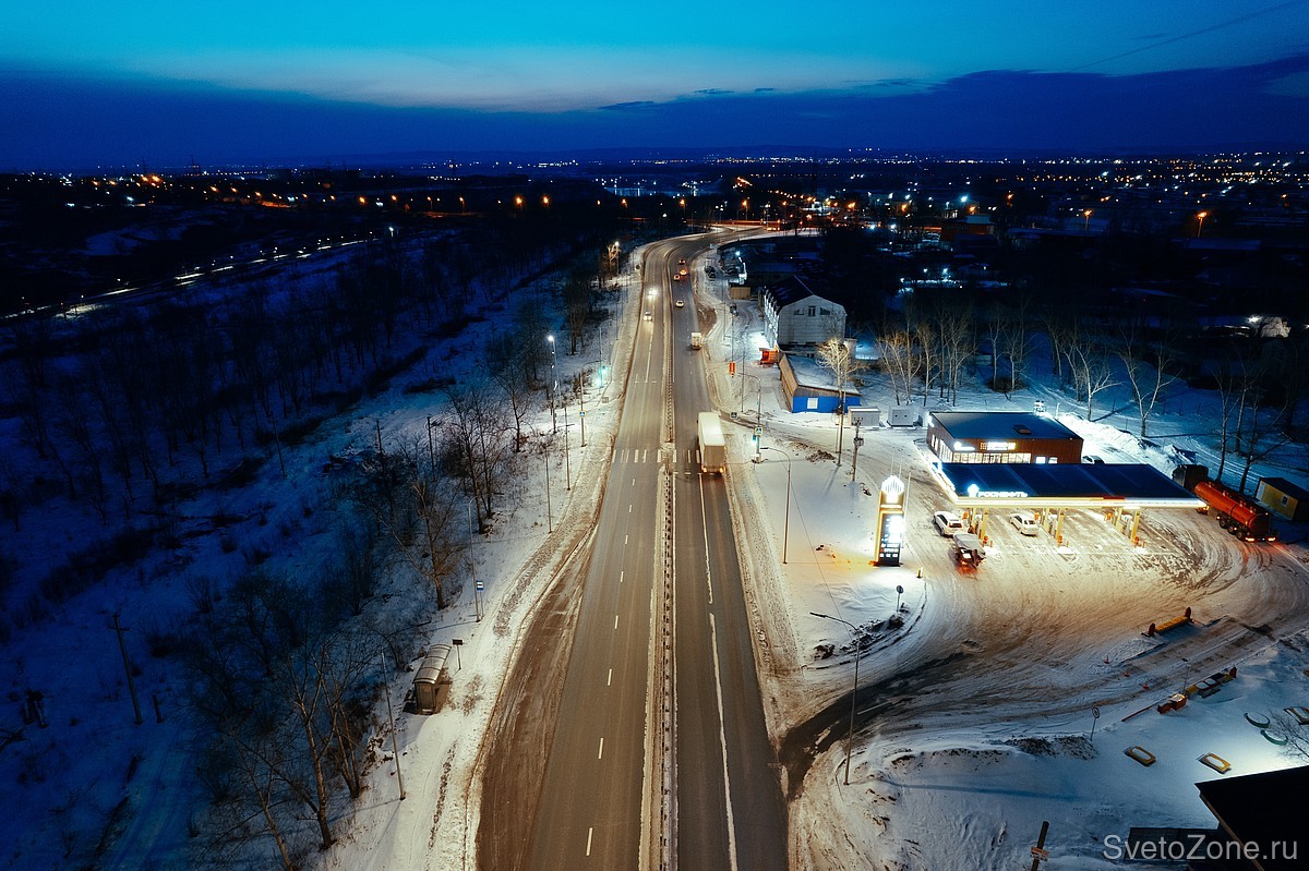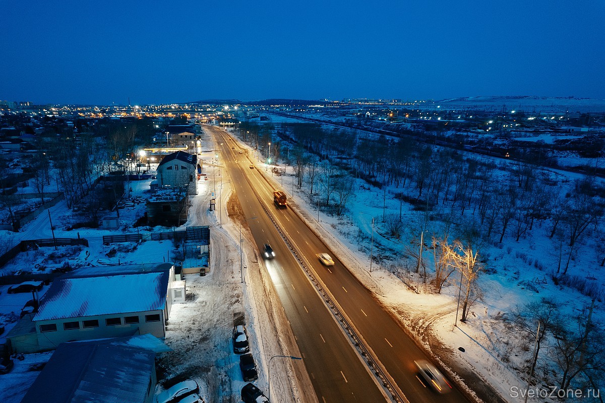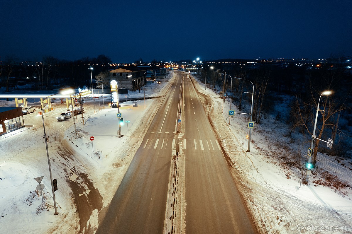 Дорожное освещение на улице Ястынской в Красноярске