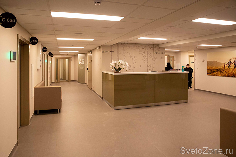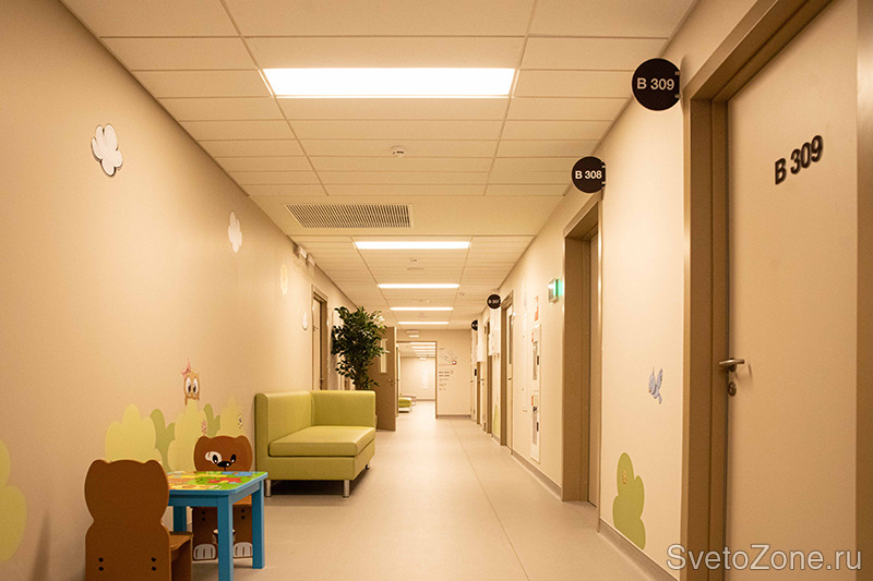 Освещение сделали комфортным как для медработников, так и для пациентов. В проекте задействованы десятки разных моделей светильников бренда GALAD. Для внутреннего освещения идеально подошли светодиодные светильники серий Арклайн, Юниор, Медик, Термит, Пиксель, Стик, Арго.