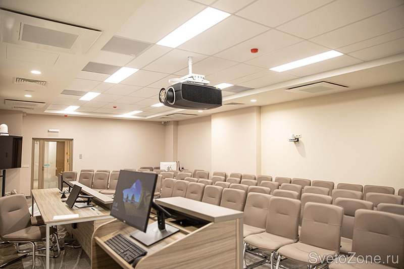 При проектировании освещения были учтены особенности учреждения и специфические потребности представленных в клинике областей медицины. Некоторые модификации были разработаны специалистами Корпорации специально для этого проекта, включая светильники Юниор и Медик с магнитной рамкой и особые «тонкие» светильники с высотой корпуса 3 и 4 см вместо 7.