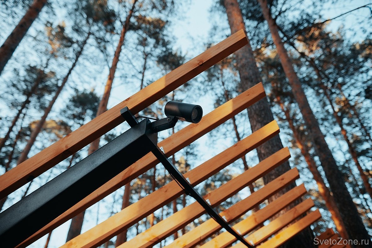 В сцену с амфитеатром встроены светодиодные прожекторы LV-LIGHTSABER мощностью 10 Вт.
