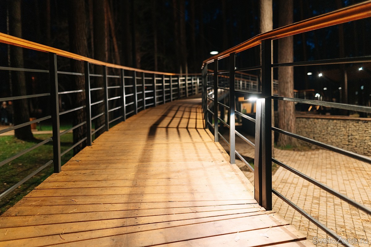 Болларды LV-SEVEN выполняют навигационную функцию и освещают деревянные дорожки, которые помогают пройти неровные участки рельефа с минимальным воздействием на корни деревьев.