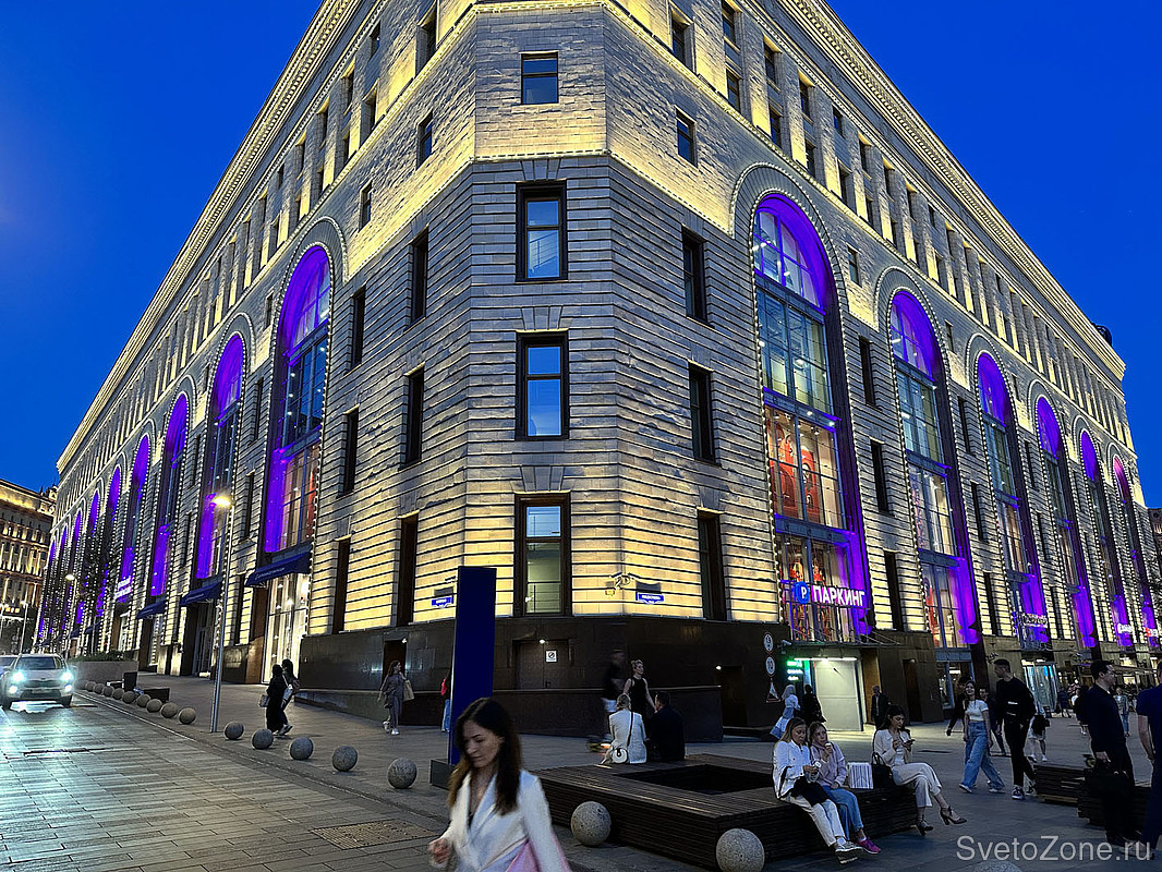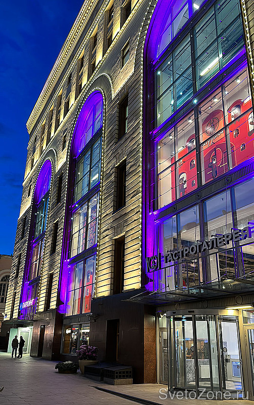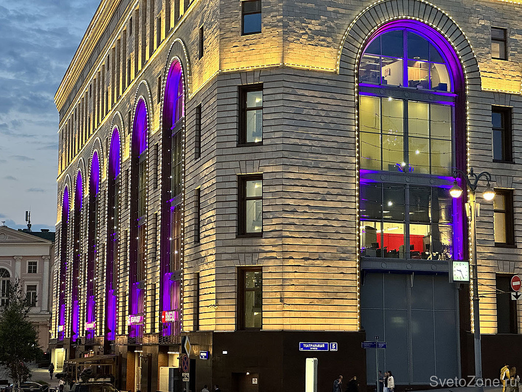 Новое архитектурно-художественное освещение оконных проемов реализовано в рамках программы по замене парка оборудования на более современное, отвечающее всем требованиям технического задания и обладающее гораздо более эффективными показателями в части качества создаваемого светового эффекта и интенсивности светового выхода.