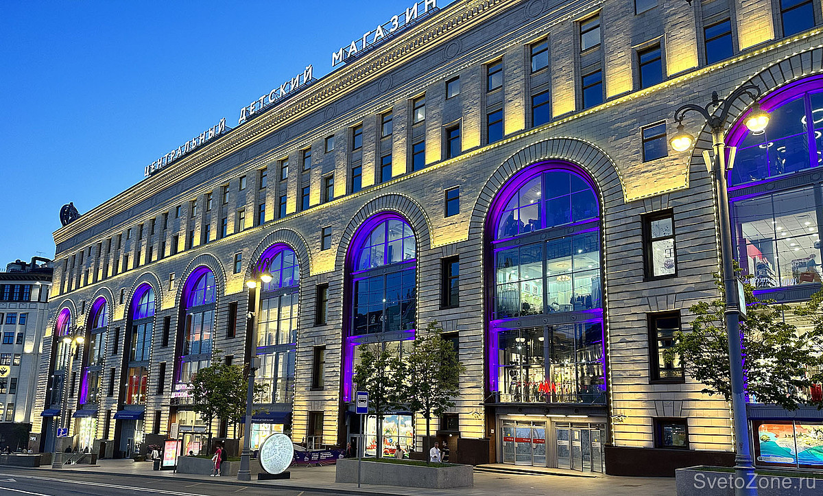 26 арочных оконных проемов являются мощнейшей визуальной доминантной особенностью ЦДМ, позволяющей безошибочно отличить архитектуру здания, расположенного в самом центре столицы и у многих ассоциирующегося с теплыми воспоминаниями о беззаботном детстве.