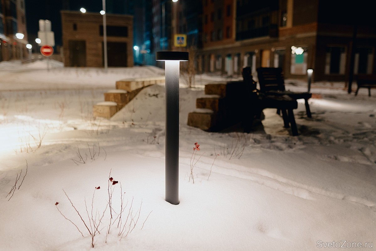 За освещение придомовой территории и мест отдыха отвечают столбики LV-BOLLARD TYPE-T высотой 1000 мм.