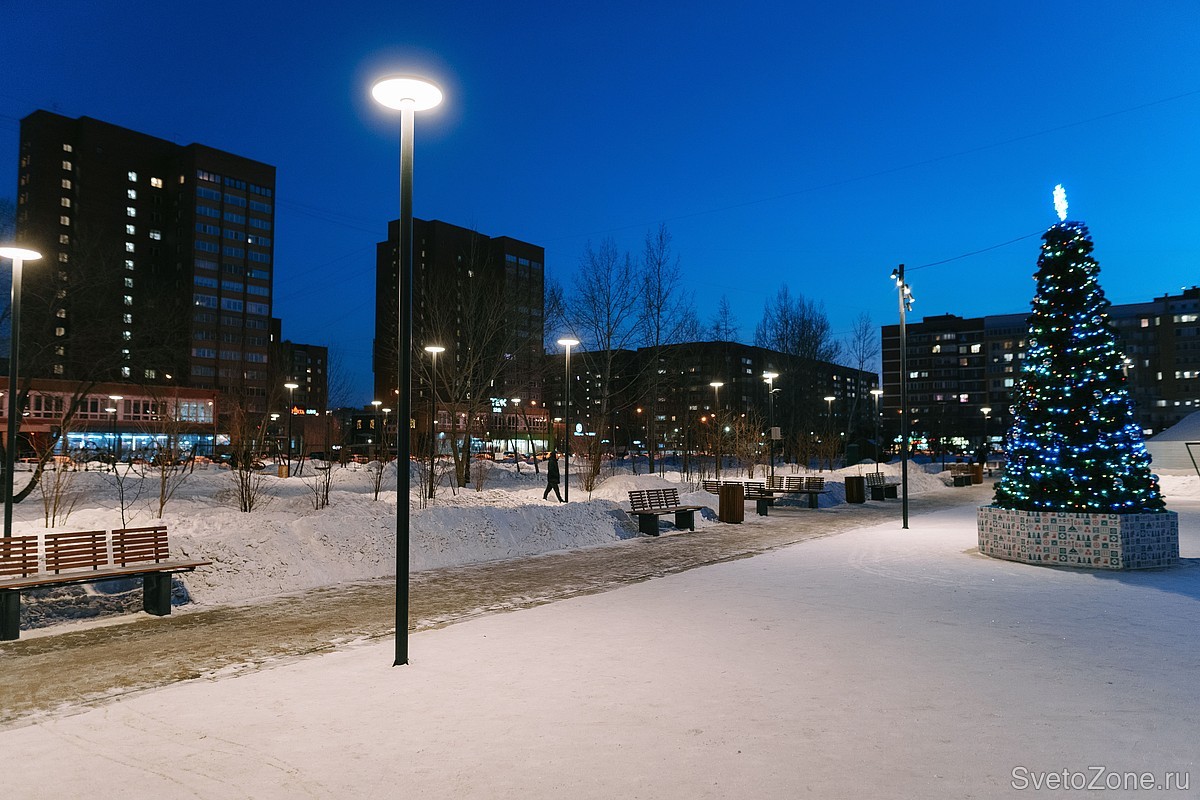 В результате появилась аллея. За функциональное освещение отвечают "LV-TORCHERE". Торшерные светильники освещают территорию вдоль маршрута.