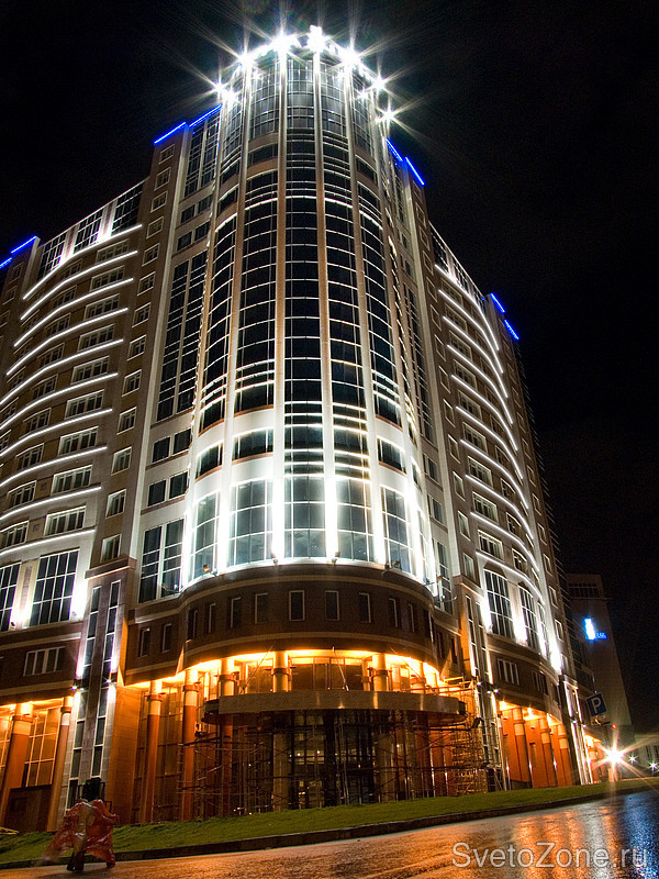 В настоящее время проводятся пуско-наладочные работы по архитектурному освещению Ланта-центра. |