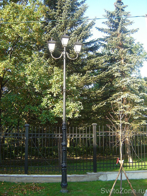 В проекте освещения территории жилого комплекса Дубки в Сестрорецке использованы металлические опоры с пластиковым покрытием, имитирующим чугунное литье и светилтники компании ROSA.