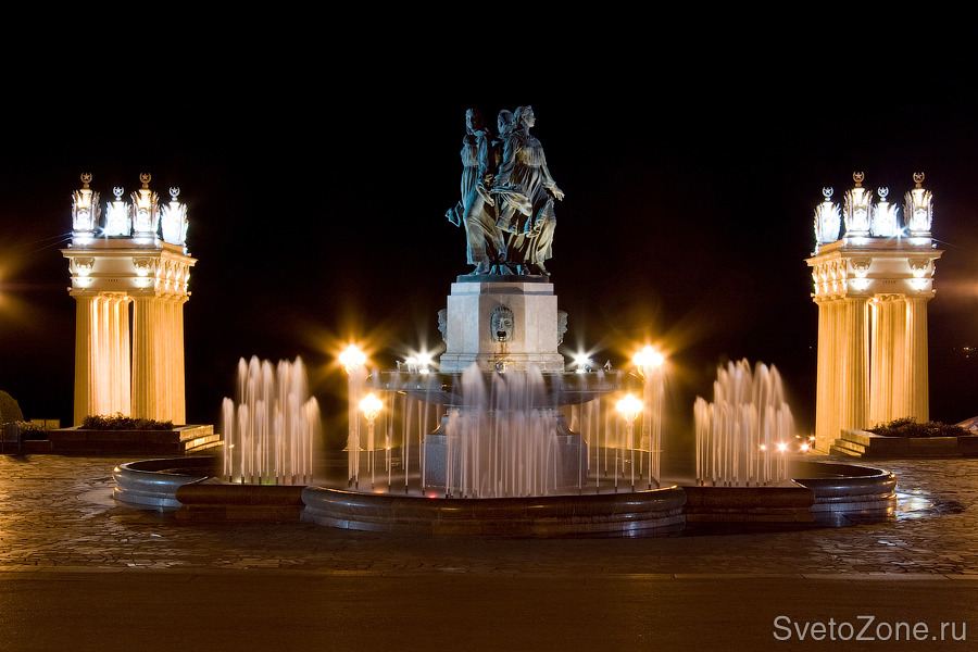 Фонтан «Искусство» - главное украшение центральной набережной города. Фонтан расположен на площади верхней террасы набережной Здесь проходят выступления хореографических коллективов, дни города и другие городские мероприятия. Освещение фонтана выполнено с помощью полностью герметичных прожекторов классом защиты IP68-2, установленных в на карнизе пьедестала. |