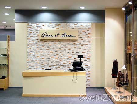 Учитывая особенность детского восприятия, наши дизайнеры по свету предложили для магазина французской детской одежды Eliane et Lena яркую и функциональную систему освещения, основанную на металлогалогенных прожекторах Action и встраиваемых светильниках Mony T/E c компактными люминесцентными лампами Dulux T/E.