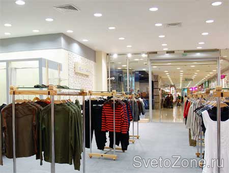 Оригинальным было решение наших дизайнеров выстроить световые линейки таким образом, чтобы они визуально продолжались рядами светильников холла торгового центра. Этот прием позволяет покупателям, не чувствуя зрительного дискомфорта, переходить из одной световой зоны (холла) в другую (магазина).