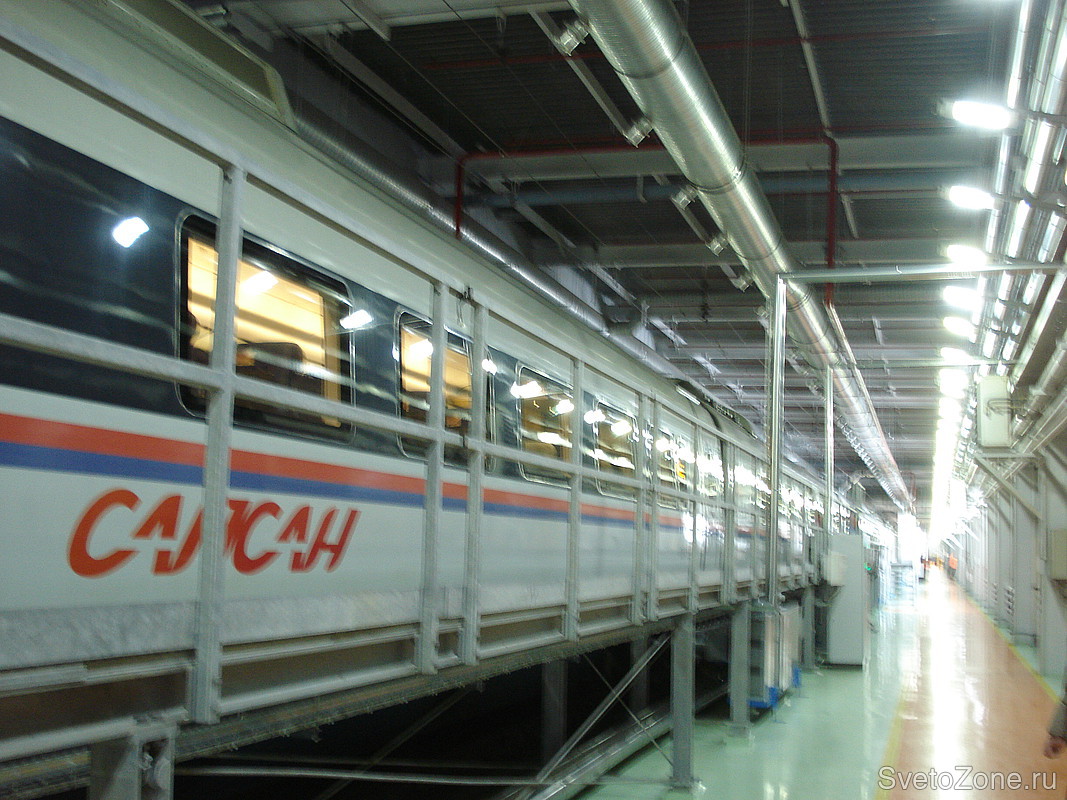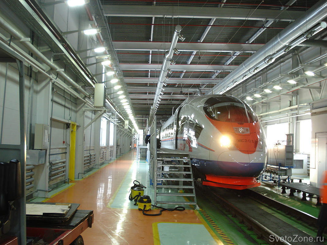 Корпорация Энергия произвела монтажные работы по установке 1200 светодиодных светильников в самом совеременном депо России - депо для самых быстрых поездов России. Сапсан способен развивать скорость до 350 км./ч., однако на российских железных дорогах его скорость ограничена до 250 км./ч. |