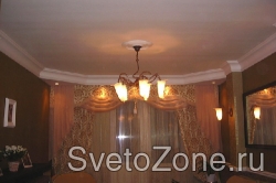 В гостиной его поддерживают обои природной гаммы, вычурные шторы со сложными замысловатыми ламбрекенами, традиционный английский орнамент, классическая люстра и добротная темнаяпаркетная доска.