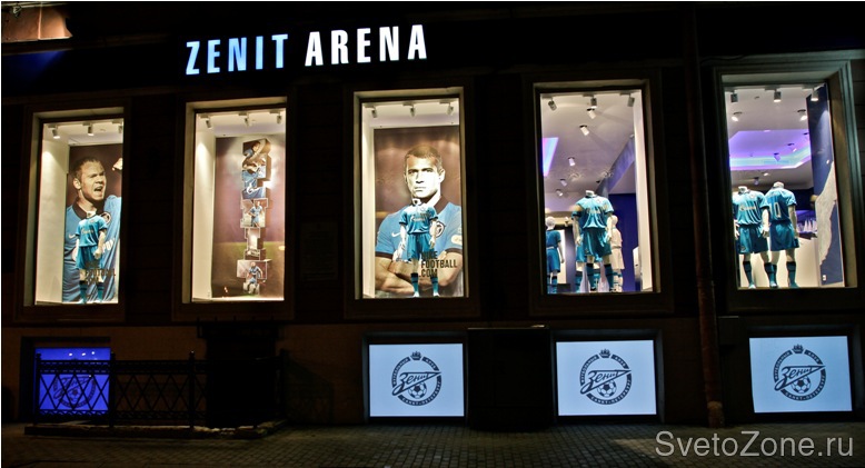 Компания ТРИНОВА выполнила работы по освещению фирменного магазина «Зенит-Арена», расположенного на Невском проспекте, 54.