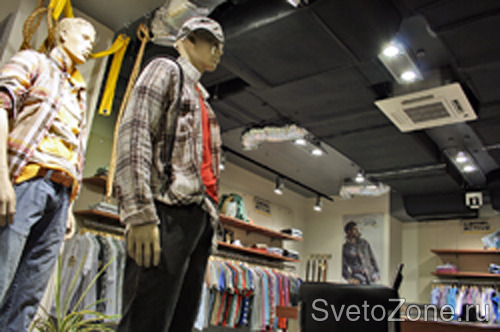 обуви и аксессуаров для мужчин, ведущих активный образ жизни. Выбор светового решения был продиктован именно направленностью магазина. Строгие формы и максимум функциональности были основными критериями выбора светильников. А корпоративный цвет песочного оттенка Camel был изящно подчеркнут лампами с теплым спектром света.